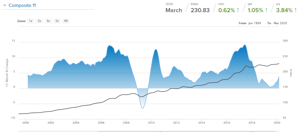 Il ne fallait pas s’étonner de ce rapport. Quand le marché de l’emploi est affecté, les prix des maisons ont tendance à suivre. Les futurs acheteurs qui ne sont pas affectés par la pandémie seront les grand gagnants. Ils conservent leurs salaires tout en ayant des prix moins élevés. On peut s’amuser à comparer l’augmentation des prix des maisons lors de la crise financière. C’est vraiment à partir de mars 2008 que l’augmentation des prix des maisons a commencé à ralentir. En décembre 2008, la croissance annuelle de l’indice est passée en territoire négatif jusqu’en septembre 2009. Le creux des prix des maisons est en avril 2009 tout de même assez près du creux des marchés qui était en mars 2009. 2017 était l’année avec la plus grande croissance des prix dans la dernière décennie avec une augmentation des prix à un rythme annuel de 14%. Les prochaines données seront intéressantes à regarder pour voir l’impact de la pandémie sur les prix.