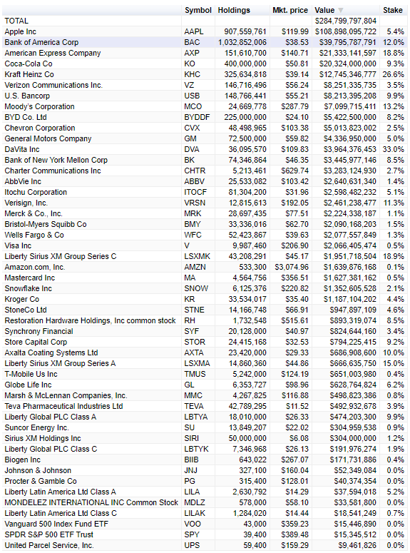 Je ne crois pas que détenir des titres individuels soit irrationnel et je ne pense pas que détenir une grande portion de son portefeuille dans un titre soit irrationnel. Je regardais le portefeuille de Berkshire Hathaway récemment et on peut voir comment il est concentré. 50% de son portefeuille est dans 2 titres et 70% du portefeuille est constitué de 5 titres. Warren Buffett n’est toutefois par un investisseur moyen et ses décisions ne sont pas toujours adéquates pour monsieur/madame tout le monde