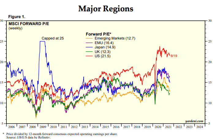 Qu’est-ce qui est différent aujourd’hui par rapport aux années 2000? On pourrait nommer les taux obligataires gouvernementaux qui sont à 1% alors qu’ils étaient de 6% dans les années 2000. C’est le résultat d’une politique monétaire agressive de la banque centrale américaine. Est-ce que les bas taux d’intérêt justifient ces niveaux? À mon avis, de moins en moins. La preuve est que les autres régions sont bien plus abordables.
