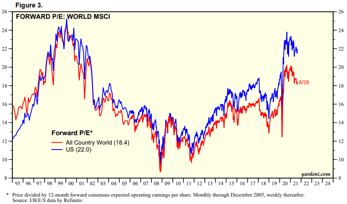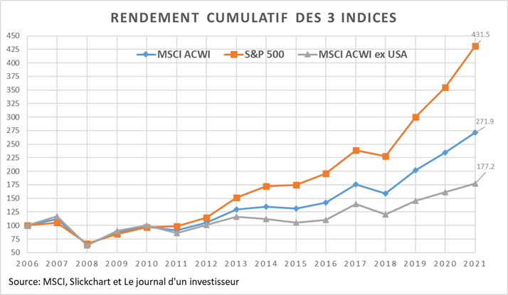 Le marché mondial (All country World) est cher, principalement à cause du marché américain.